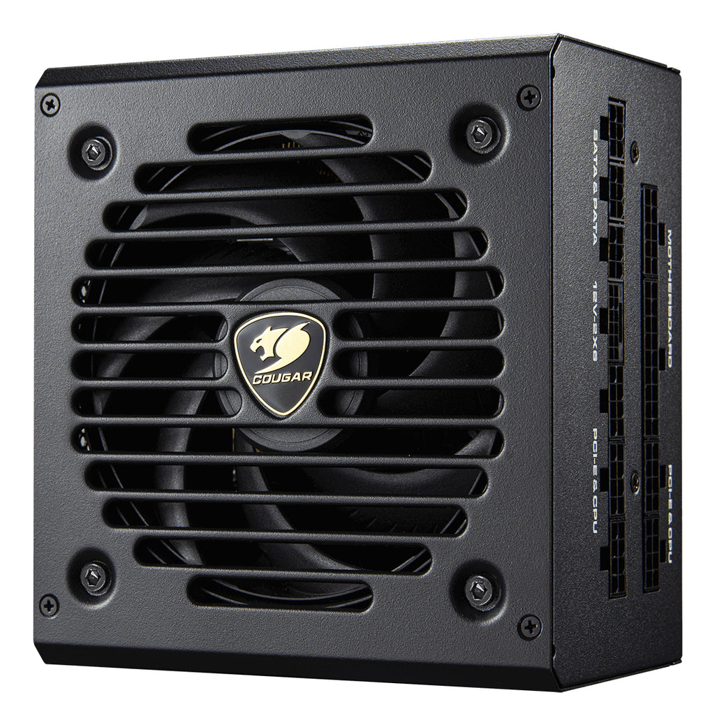 COUGAR CGR GEXP-850. Potenza totale: 850 W, Tensione di ingresso AC: 100 - 240 V, Frequenza di ingresso AC: 50/60 Hz. Connettore scheda madre: 20+4 pin ATX, Lunghezza del cavo di alimentazione della scheda madre: 61 cm, Lunghezza del cavo di alimentazione SATA: 400,520,640,760 mm. Utilizzo: PC, Fattore di forma dell'unità di alimentazione (PSU): ATX, Certificazione 80 PLUS: 80 PLUS Gold. Colore del prodotto: Nero, Tipo di raffreddamento: Attivo, Diametro del ventilatore: 12 cm. Certificati di conformità: CE, EAC, Federal Communications Commission (FCC), RoHS, UKCA