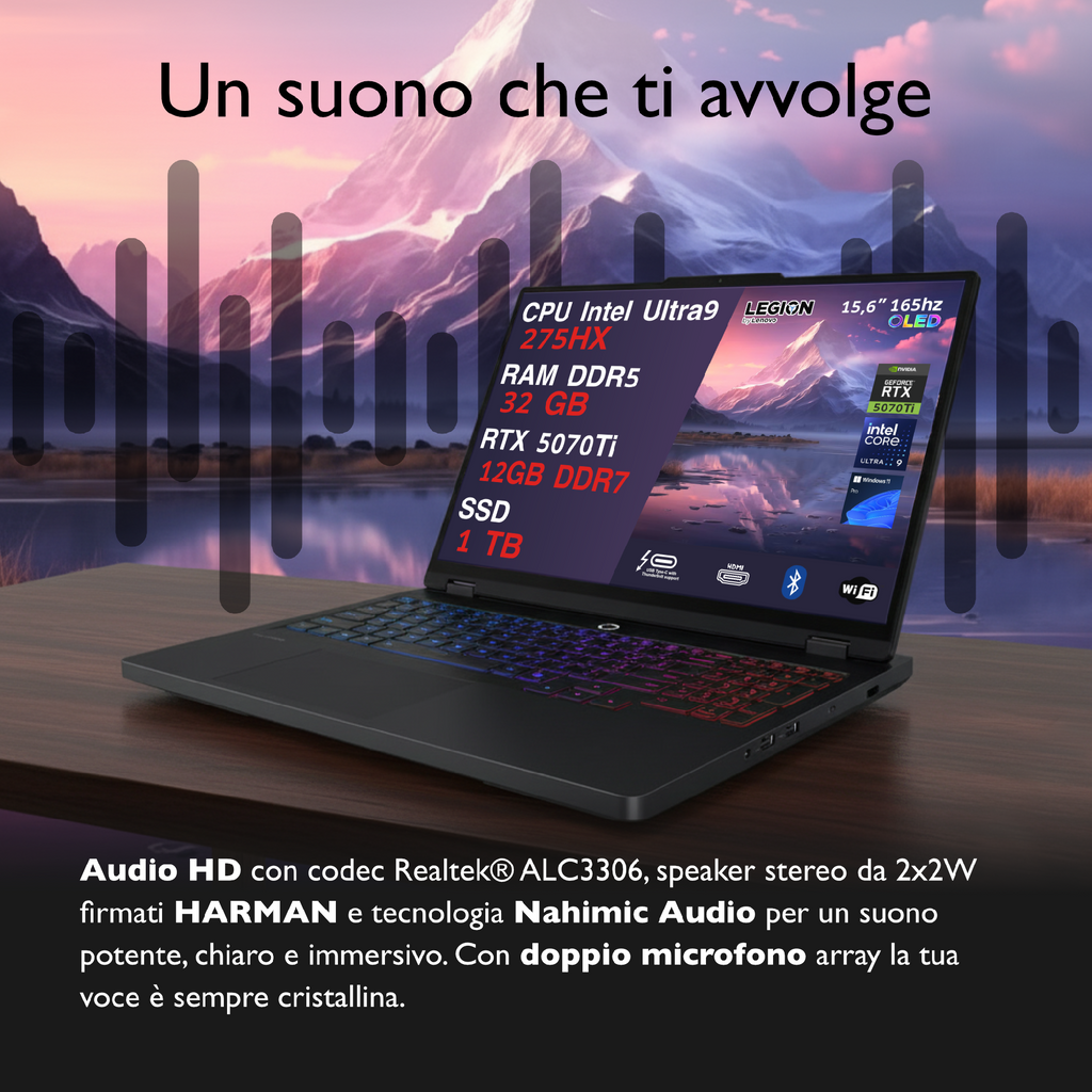 2x USB-A 3.2 Gen 1 (5Gbps) 1x USB-A 3.2 Gen 2 (10Gbps, Always On) 1x USB-C 3.2 Gen 2 (10Gbps, Power Delivery & DisplayPort 2.1) 1x Thunderbolt™ 4 (USB4 40Gbps, DisplayPort 2.1) 1x HDMI 2.1 (fino a 8K/60Hz) 1x Combo Jack cuffie/microfono 1x Porta di alimentazione |
