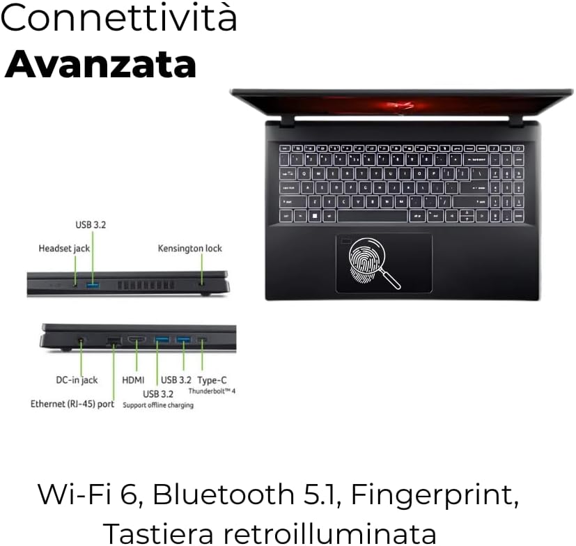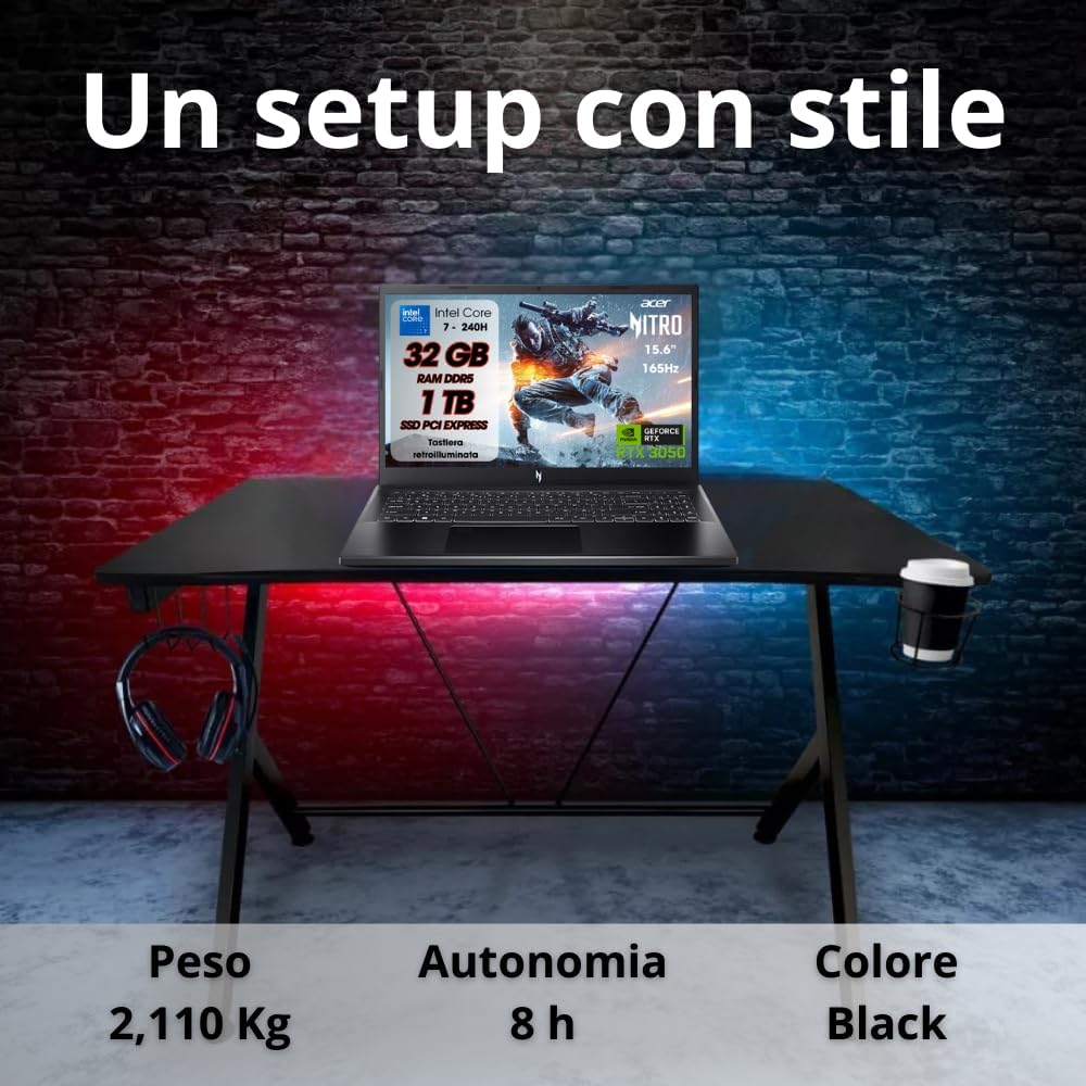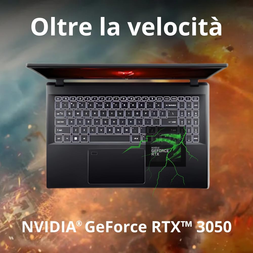 NOTEBOOK ACER NITRO V 15,INTEL CORE 7 240H, 32GB DDR5 RAM, 1TB SSD, 15.6 FHD IPS 165HZ, GEFORCE RTX 3050 6GB GDDR6, WINDOWS 11 PRO, TASTIERA RETROILLUMINATA PN:NH.QV3ET.001
