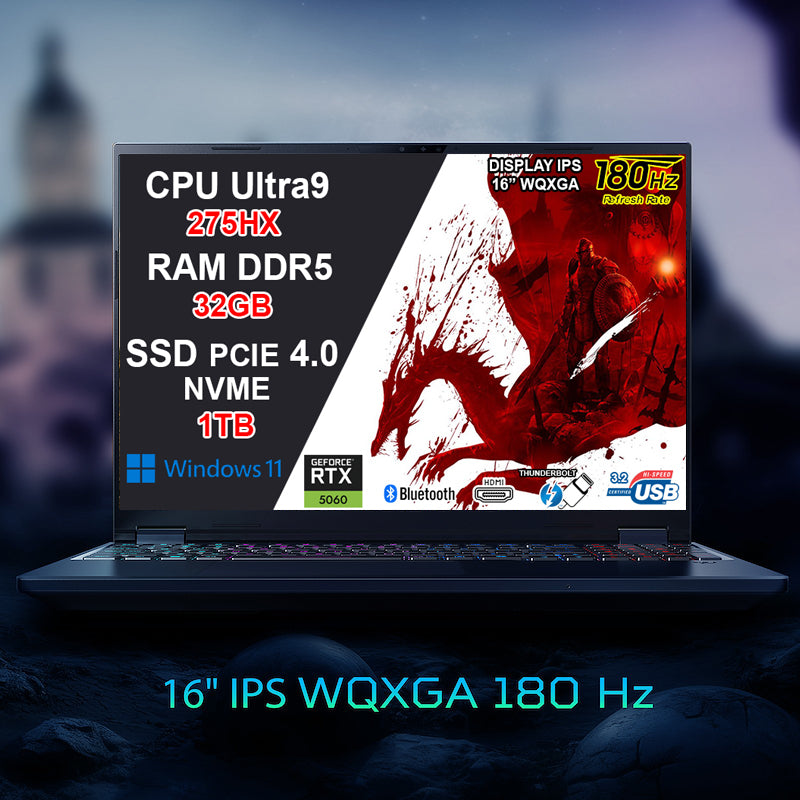 16" WQXGA IPS (2560x1600), 180Hz, 400 nits |