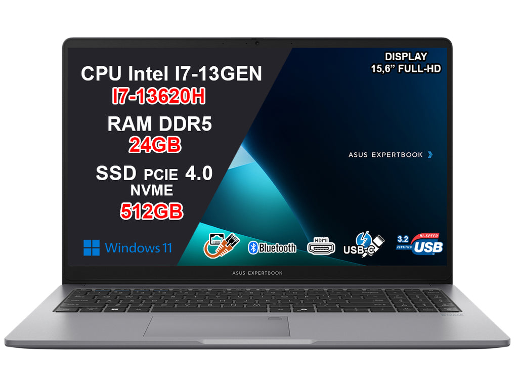 - Intel Core i7-13620H 2.4 GHz (24MB Cache, up to 4.9 GHz, 10 cores, 16 Threads) -