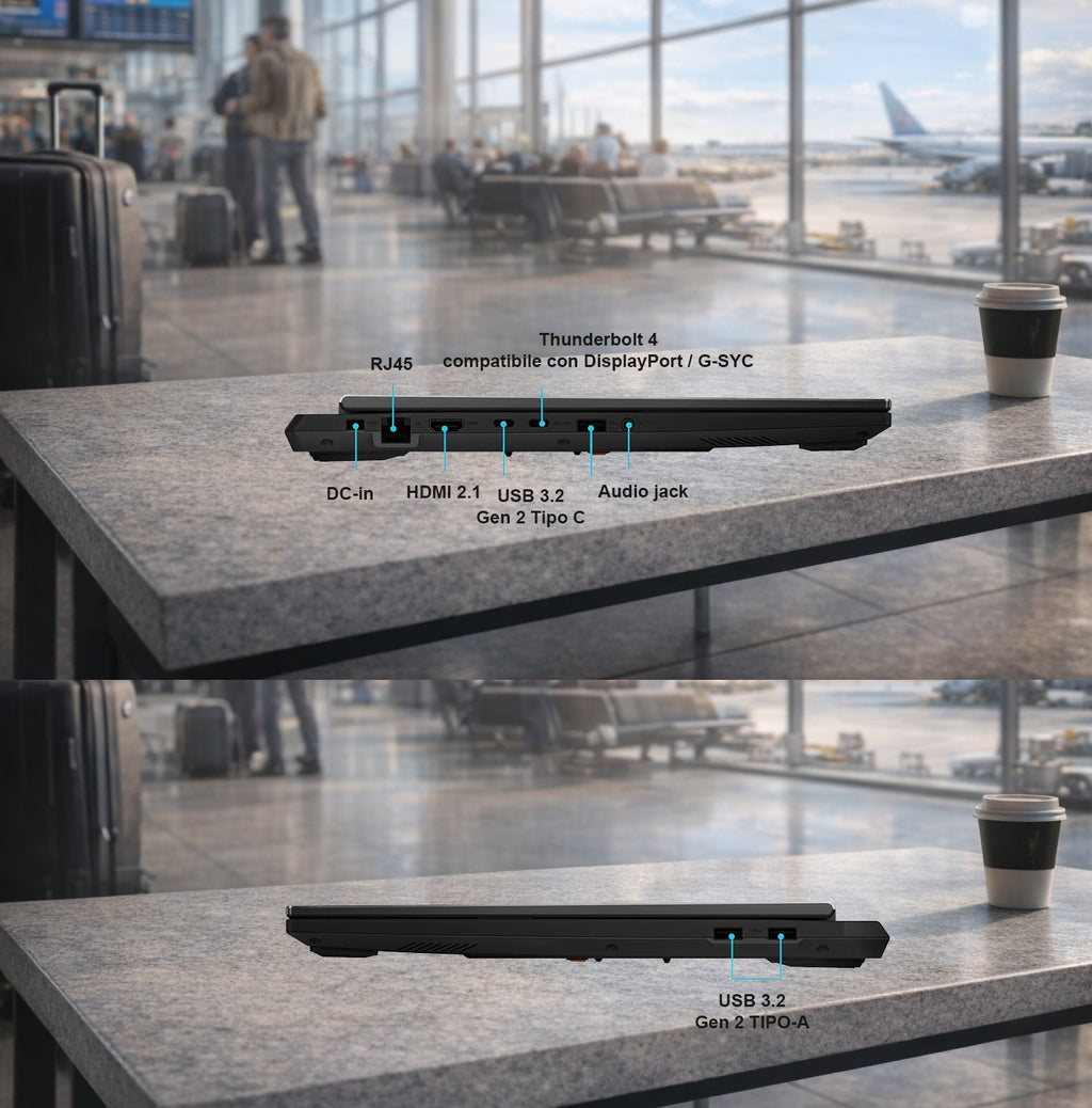 1x Thunderbolt™ 4 (DisplayPort / G-SYNC, 40Gbps) 1x USB 3.2 Gen 2 Type-C (DisplayPort / power delivery, 10Gbps) 3x USB 3.2 Gen 2 Type-A (10Gbps) 1x RJ45 LAN port |