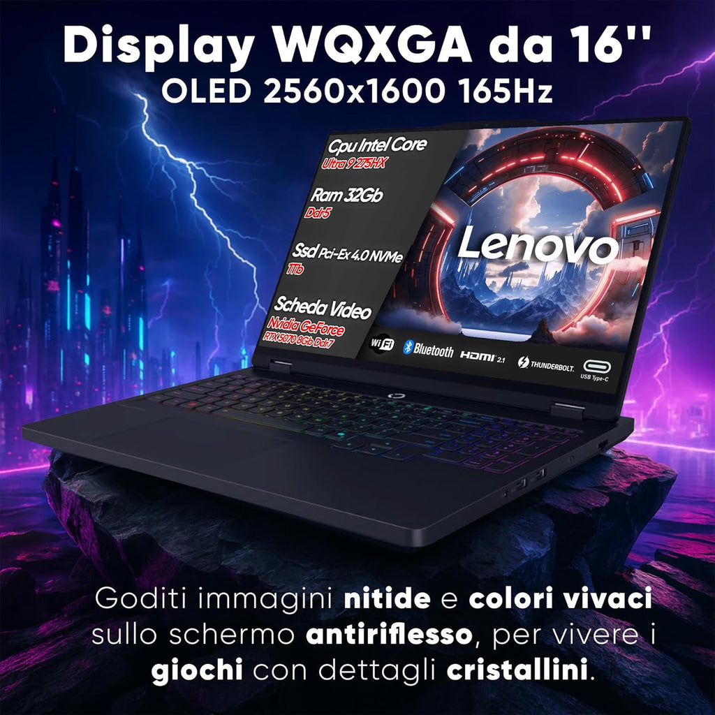 NOTEBOOK LENOVO LEGION PRO 5 ULTRA 9 275HX, 32GB RAM, 1TB SSD, 16.0 WQXGA OLED 165HZ, RTX 5070 8GB, ECLIPSE BLACK, WIFI 7, TASTIERA RGB, WINDOWS 11 PRO PN:83F3006QIX